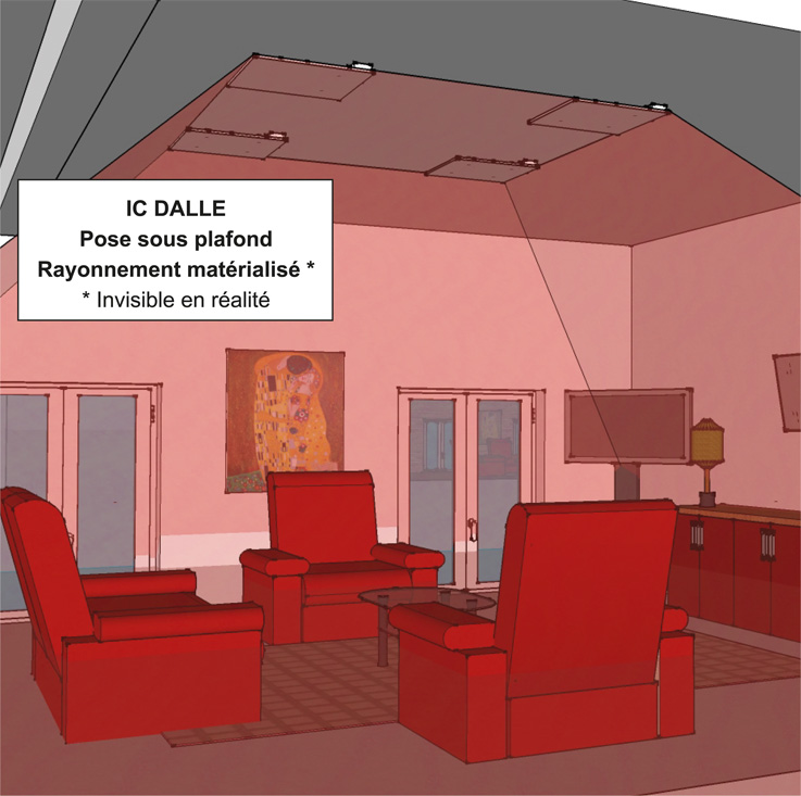 Certains radiateurs Infrarouge Center peuvent être installés sous plafond