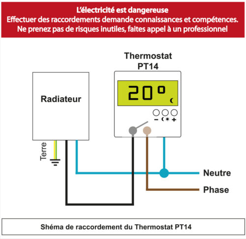 Le raccordement du TH-BASIC est filaire (3 bornes à connecter, phase entrante, phase sortante, neutre).