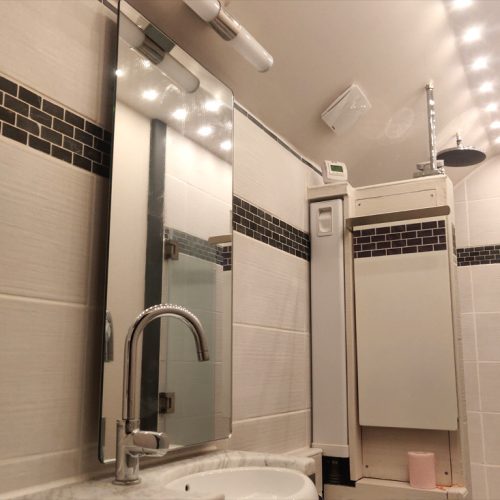 IC-MIROIR remplace avantageusement un miroir et un radiateur dans une salle de bain.
