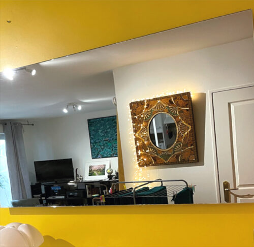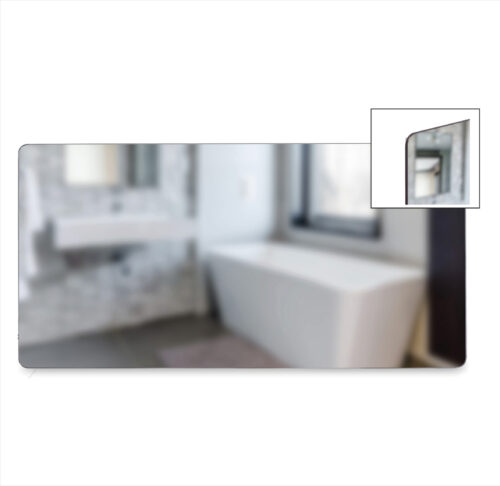 Verre de sécurité, miroir chromé, bords biseautés, coins arrondis